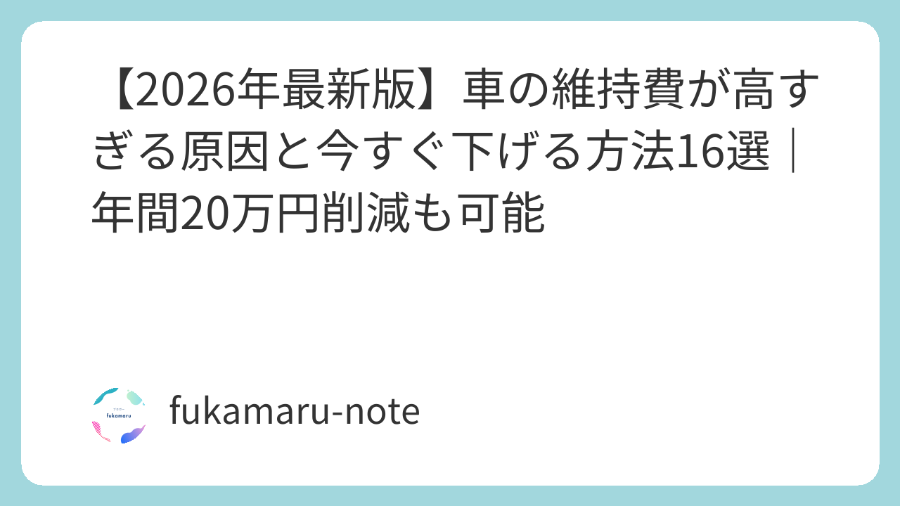 車の維持費は「固定+習慣」で決まります。
