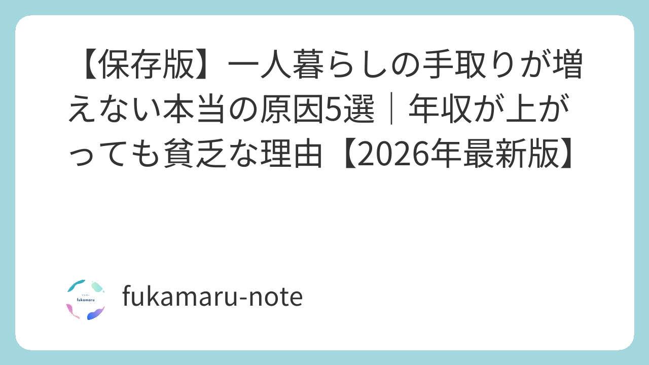 【保存版】一人暮らしの手取りが増えない本当の原因5選|年収が上がっても貧乏な理由【2026年最新版】
